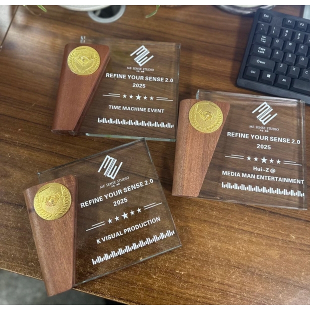 水晶獎牌設計符合手握比例,重量適中,展現沉穩質感,拿在手中即可感受到榮耀份量。